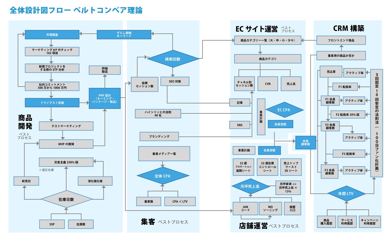 オメガ理論(ベルトコンベア理論)は、勝手に自社のファンになって頂くためのプロセスを6つに分分解しフロー化した概念です。