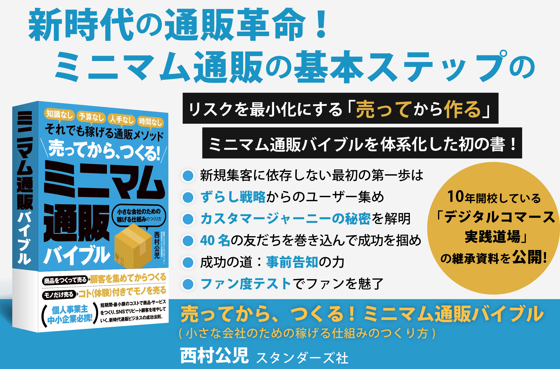 そして、この「売る仕組み」をつくり出す最たるものが、本書が提唱する「ミニマム通販」の思考です。