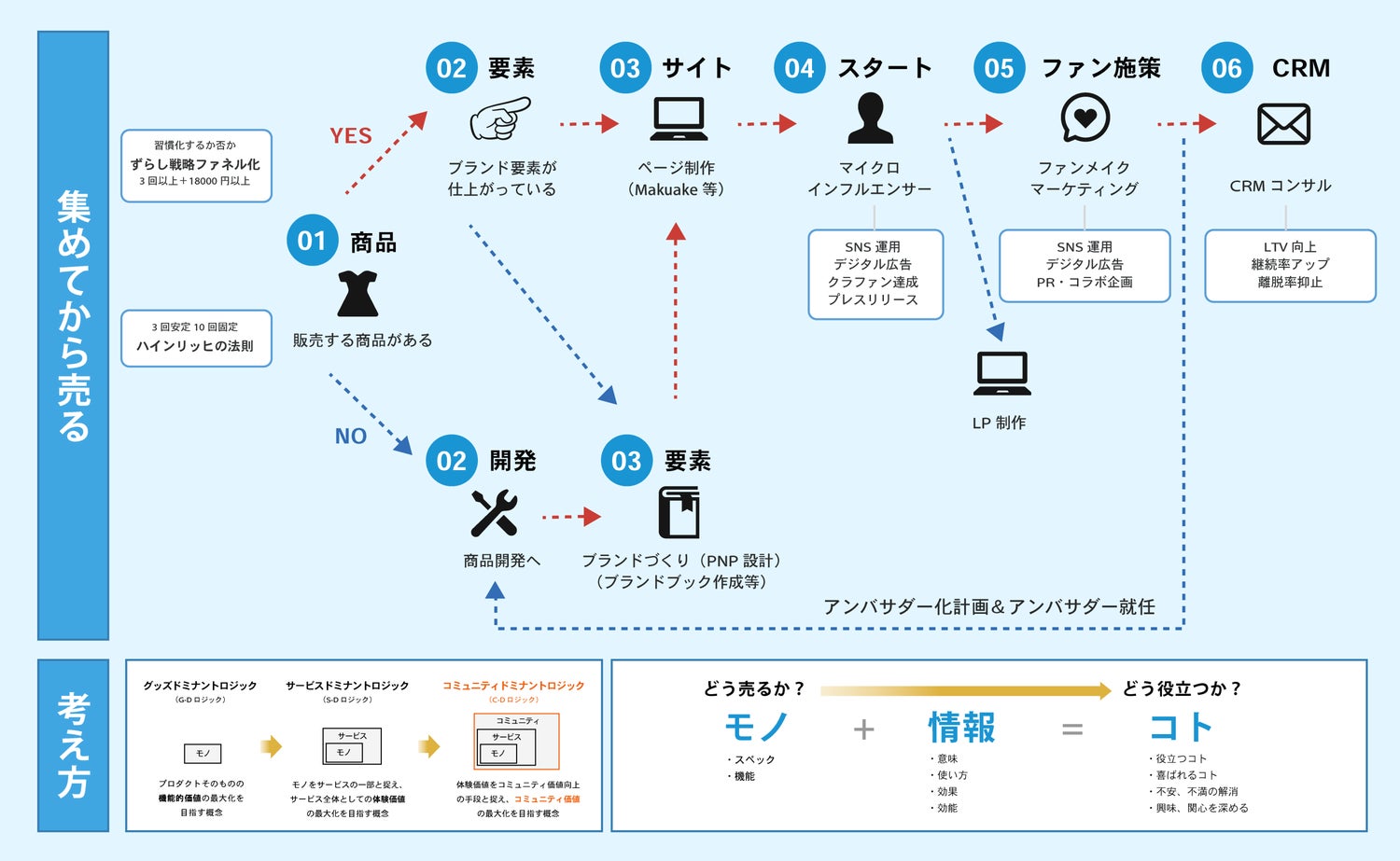 ポイントは商品やサービスを完成させてから売るのではなく、先に顧客を集めてファン化し、リピート購入してもらうようにすること。