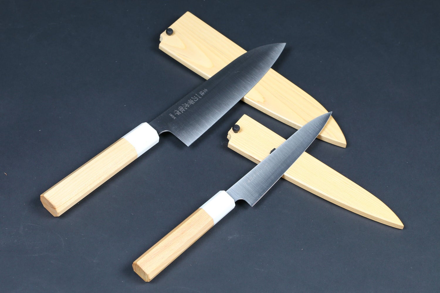 一刀斎虎徹 INOX 和ペティ 青森ヒバ八角人工大理石口輪柄青森ヒバ鞘付き