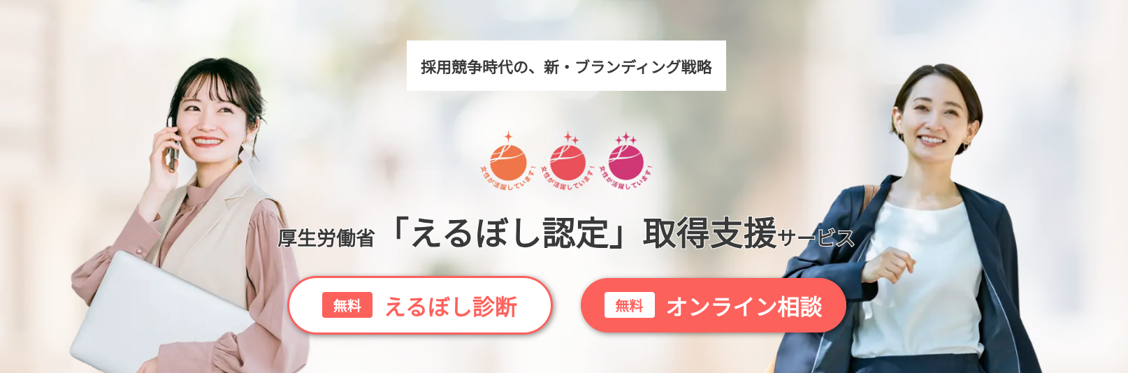 厚生労働省が「女性活躍」を推進する企業に付与する「えるぼし認定」。認定要件の達成に向けたアドバイスや申請手続きの代行だけでなく、企業利益を考慮した包括的なコンサルティングをご提供します。
