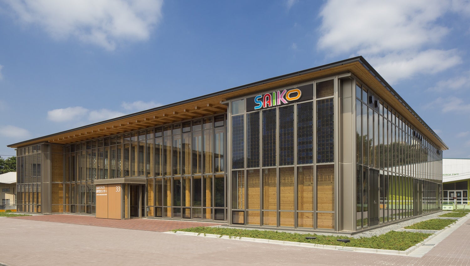 ものづくり研究センター(現ものづくり研究棟)は、平成25年度に実施した学園創立110周年の記念事業の一つとして建設された建物で、木の温もりと開放感が特徴です。