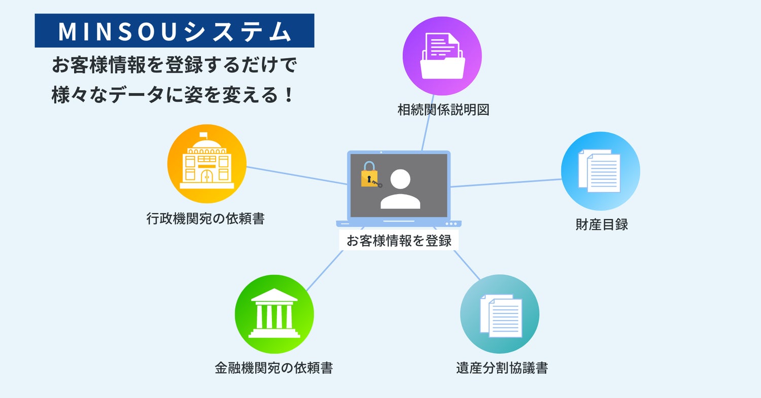 MINSOUシステムとは、Microsoft社のサービスをベースに株式会社ルリアンが構築した専門家向けの相続手続き管理システムです。