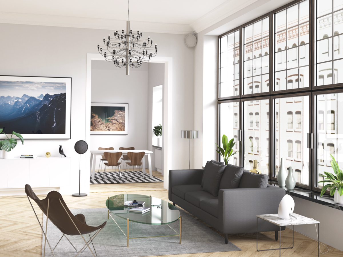 壁掛けはコーナー用(壁掛け用)と平面用(スタンド置き用)といった2種類の専用マウントをご用意しているため、インテリアデザインに合わせて設置方法をお選びいただけます。スタンドは高さを2段階で変えられるほか、スピーカー単体でのテーブルトップ設置も可能です。