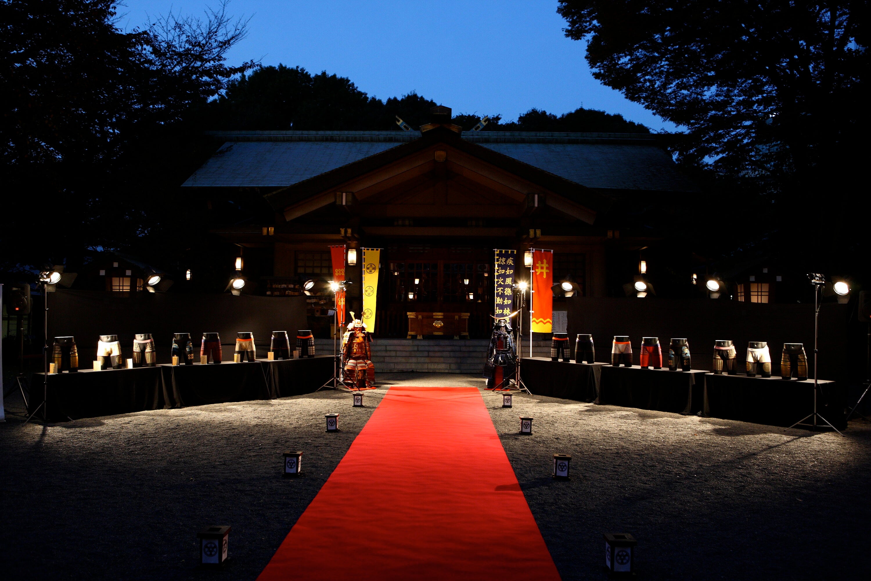 甲冑パンツ展示会では太鼓演奏も披露した。そのユニークなキャラクターから