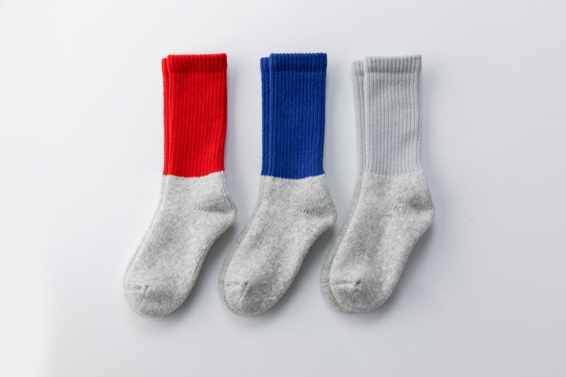 過酷な条件下のマグロ漁船で働く方々も履いていると噂の超防寒仕様靴下、「マグロの靴下」。惜しくも数年前に廃盤となってしまったマグロの靴下をSAGYOで復刻、アレンジしたものです。デザインと強度設計はマグロの靴下そのままに、普段使いにも対応出来るよう肌触りのいい糸に変え、ゴムの跡が付きにくい履き口にしました。