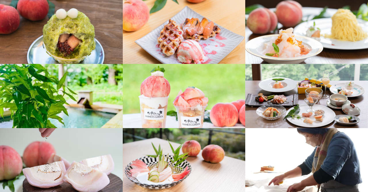 採れたて桃にスイーツ、フード&ドリンク、お土産など、桃にまみれる2ヶ月間をお楽しみください!