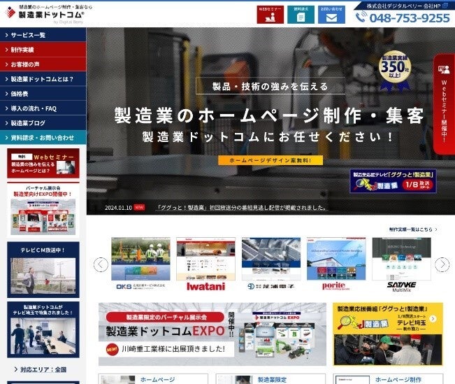 製造業の技術・強みを分かりやすくPRするためのホームページ制作サービス。印刷物やデジタルカタログ、動画制作にも対応し、課題解決のためのクロスメディア提案が可能。導入実績350社。
