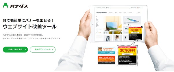 導入費0円のWeb接客ツール。デザイナーやエンジニアがいなくても、誰でもバナーの表示や、Webサイトの書き換えが可能。