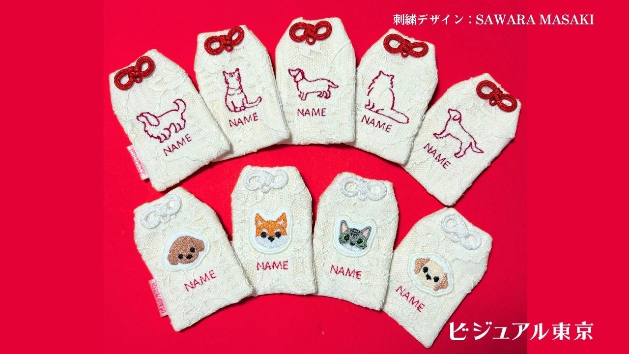 名入れ刺繍で特別感をプラスしたお守りです。SAWARA MASAKIが観察して描いた「愛らしい表情」のワンちゃん・猫ちゃんを刺繍したお守り。ペットと飼い主の間に存在する目には見えない「絆」を表現しています。ギフトにもオススメです。