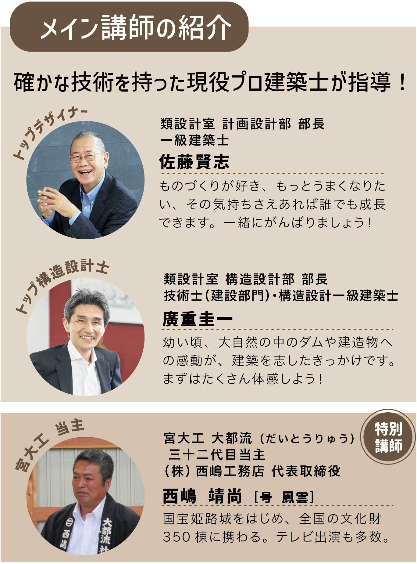 講師をつとめるのは第一線で活躍する現役の建築士たち。