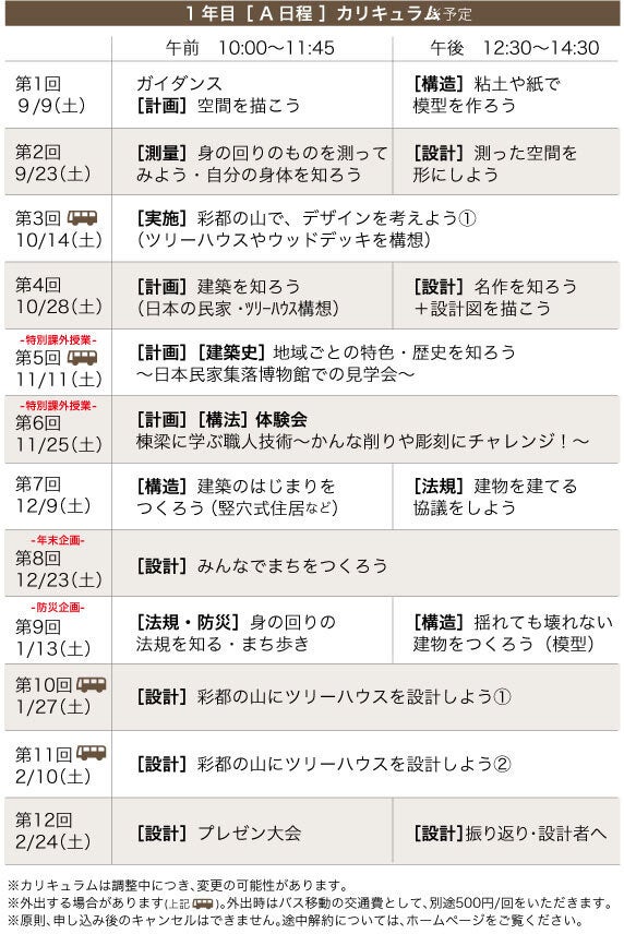 期間:1年目 A日程9/9~2/24