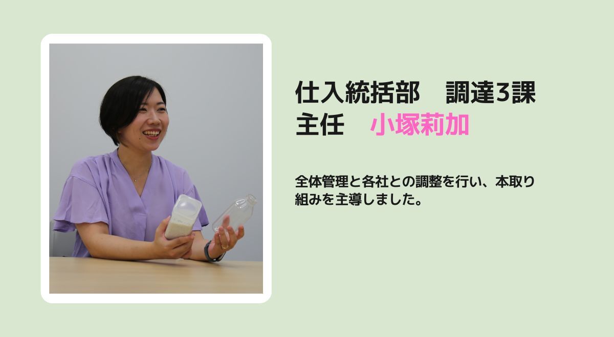 2014年入社。納豆の商品開発を経て、2019年4月から仕入統括部へ。「一緒に仕事をしたいと思ってもらうこと」を大事にしており、困難にも常に前向きに取り組む。2児の母。