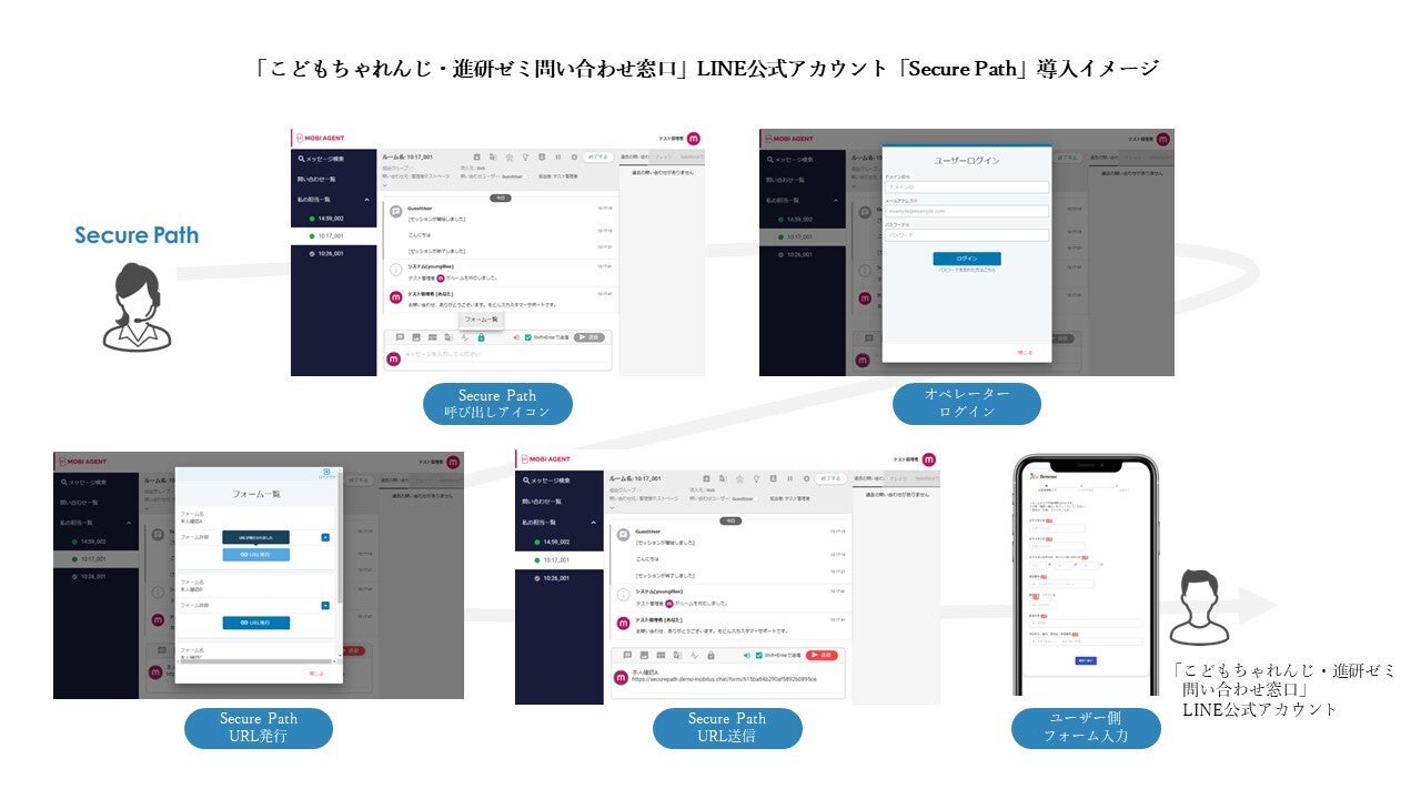 Secure Pathを利用すると、例えばWebやLINEでのチャットサポートにおいて、オペレーターが顧客の個人情報を安全に受け取り、本人確認や個人情報に基づいた個別対応を行うことができます。