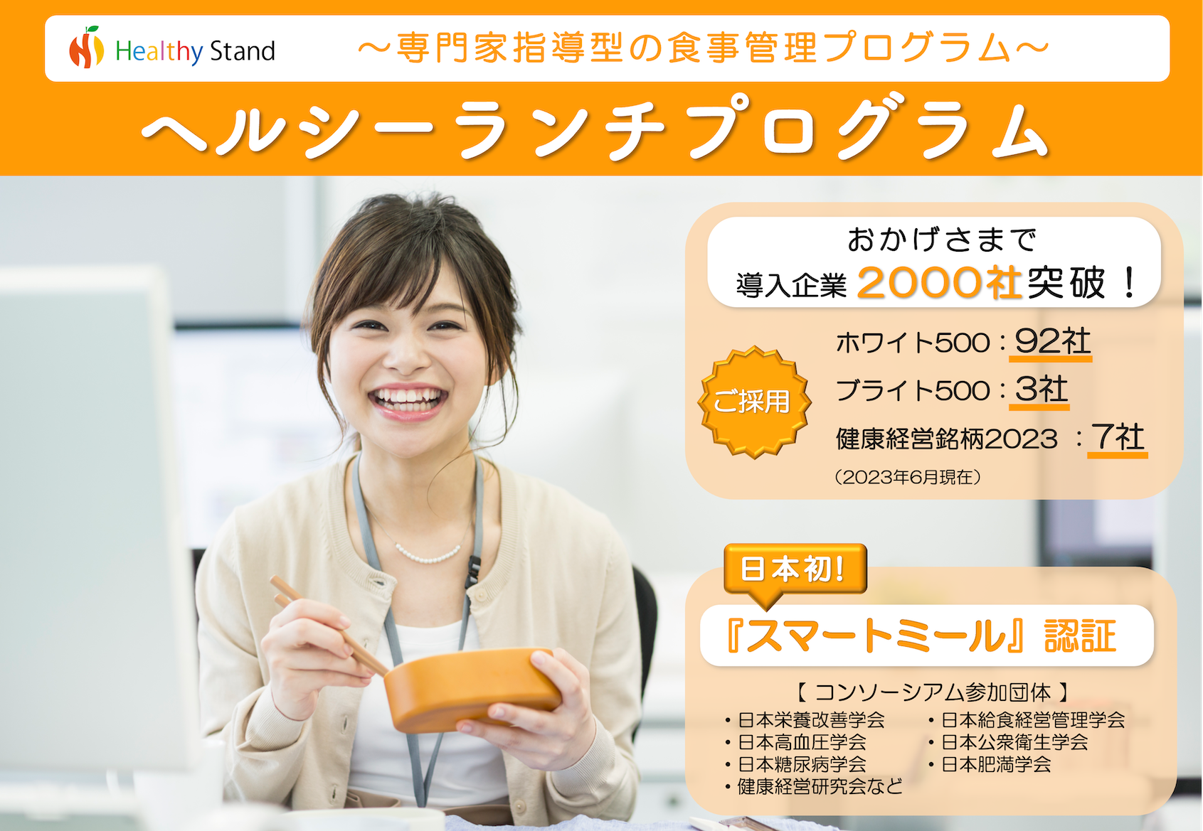 ヘルシーランチプログラムは、業界初のスマートミール認証のお弁当を毎日オフィスにお届けする、法人様向け健康経営支援サービスです。お弁当毎日食べ続けることで、自ずと栄養バランスが整い「まるで管理栄養士が伴走するマンツーマンレッスン」のような食事管理のプログラムとなっております。