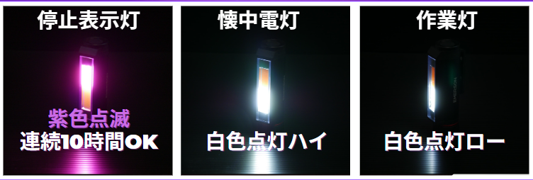 【実行時間】白点灯Hi:3h 白点灯Low:10h 紫点滅:10h