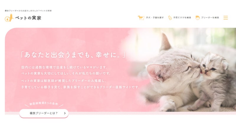 8つの掲載条件を満たした優良犬・猫ブリーダーを紹介するペットの実家。
