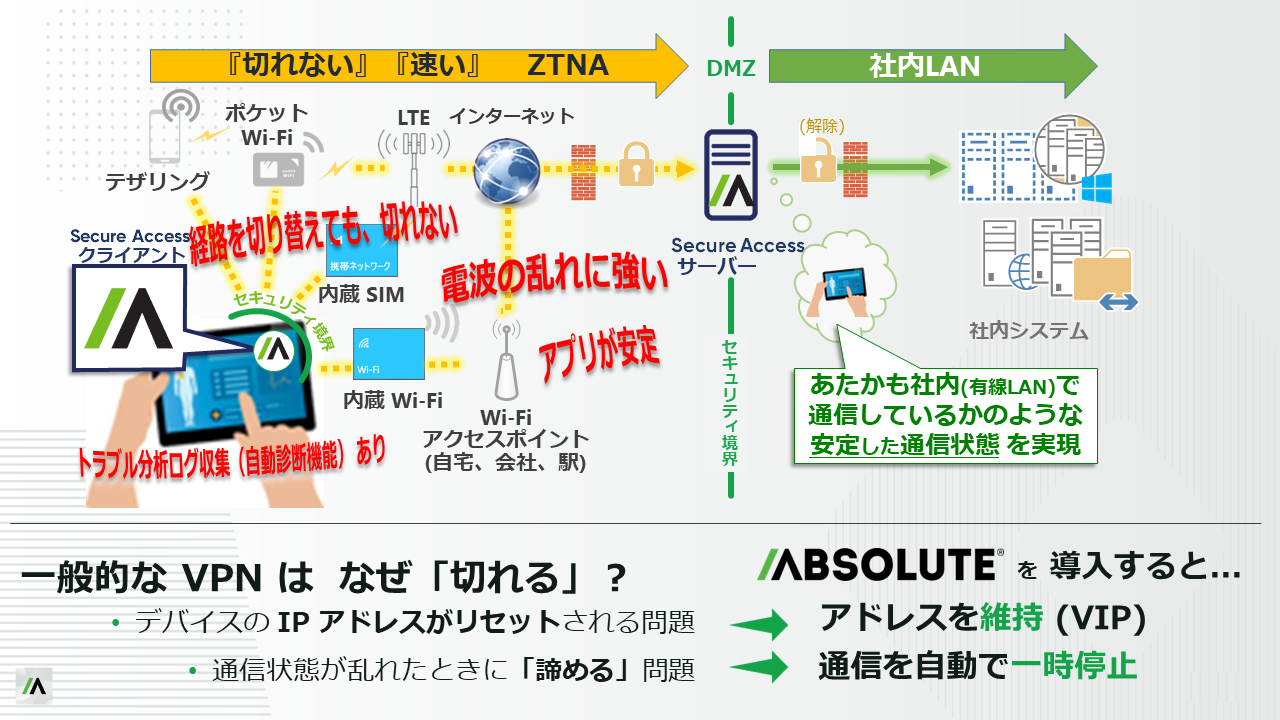 「切れる、遅い」というVPNの不満を解消して、「切れない、スムーズ」なVPNに。