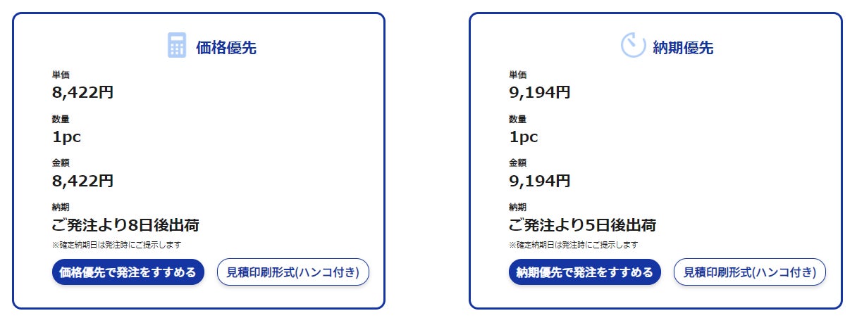 クラウドにアップロードされた部品図面の加工情報を統計解析し、パートナーシップを結んだ加工会社の工場・加工データ(設備、加工種別、加工工数、納期)と組み合わせることで、図面毎に見積もりすることなく、価格・納期の最適な見積もりを即時提示するサービスです。また、納期においても自社の工程負荷状況に応じた日数が自動で算出されます。図面データと加工データをAI・統計解析によるアプローチで組み合わせることで、人の経験に依存していた部品の調達・見積もり業務のDX化を実現します。