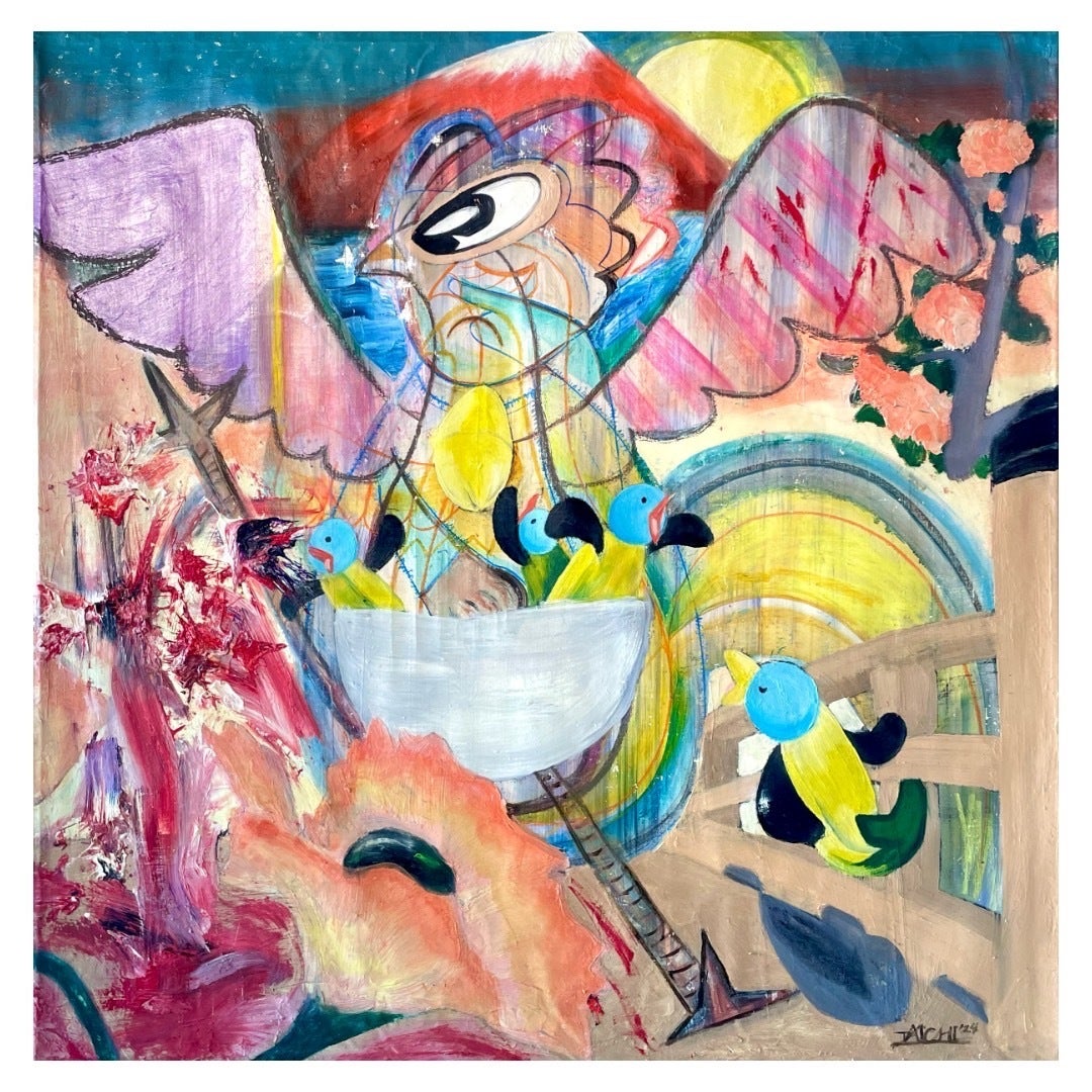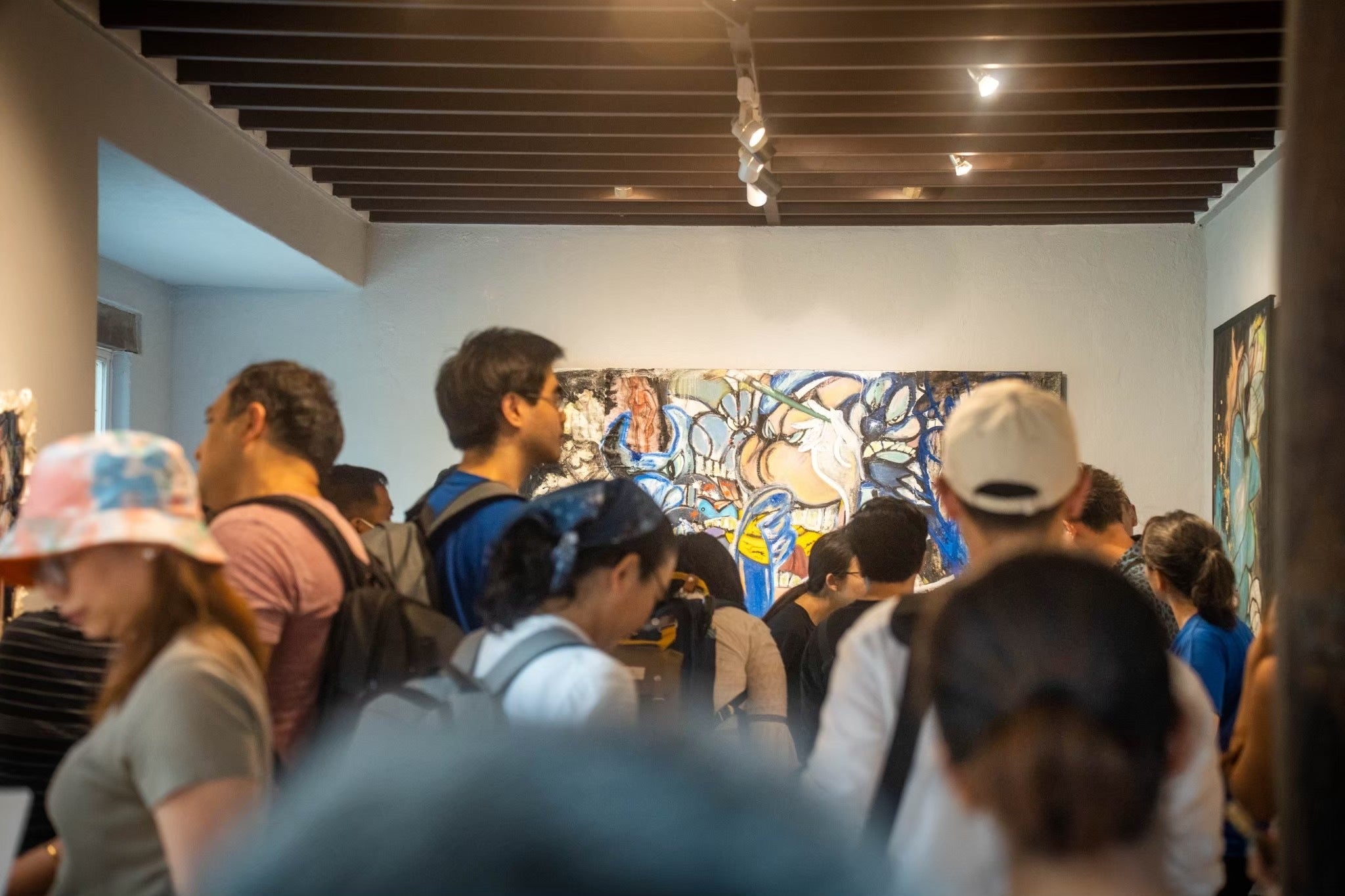 展示作品には、彼の精神性とオリジナルキャラクター「バナナンギン(バナナとペンギンのハーフ)」が反映され、異文化の融合と自己葛藤を表現している。このキャラクターは異なる文化を象徴し、国際社会にその存在をどう受けとめていくのかを問いかけている。