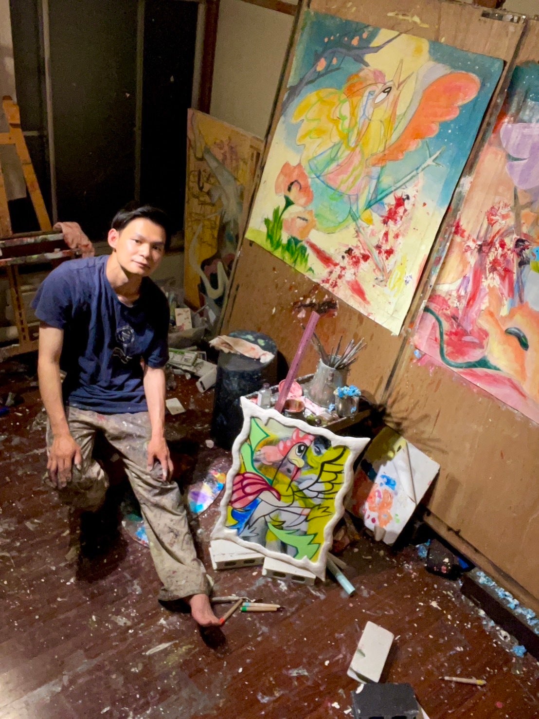 麗澤大学卒業後、某メーカーに入社。世界的に注目されるアーティスト田中拓馬氏に師事し、会社員を経て2016年よりアーティストとしての活動を本格化させる。