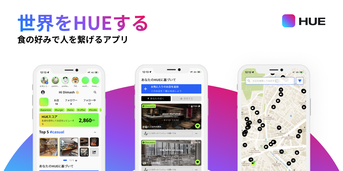 「自分が美味しいと思えるお店が見つからない。」既存のグルメサイトや、食の好みが違う友人に頼らない新感覚のお店探しアプリ「HUE」が誕生するまでの秘話。