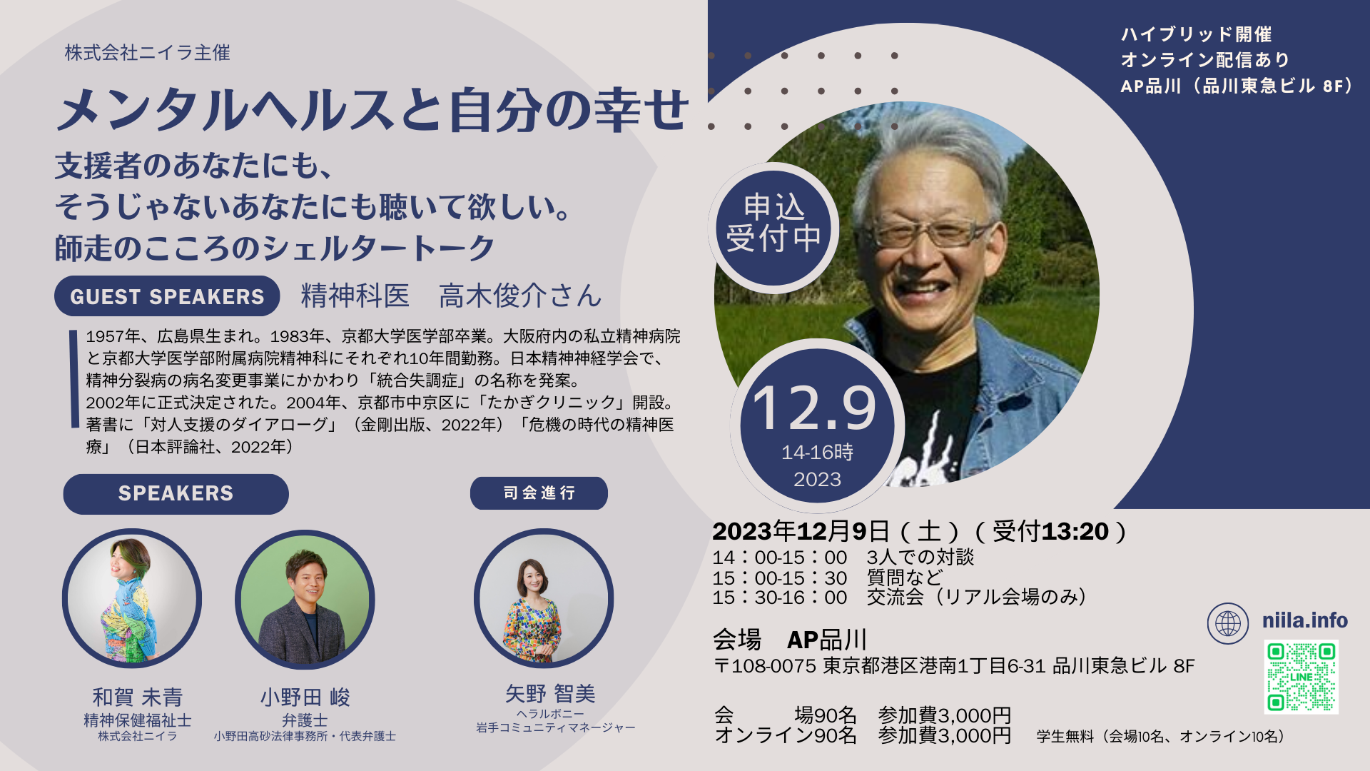 自分のメンタルへルスと幸せについて、自分で考えて選ぶ大切さを知って欲しい。メンタルヘルスの専門家によるトークセッション開催の背景