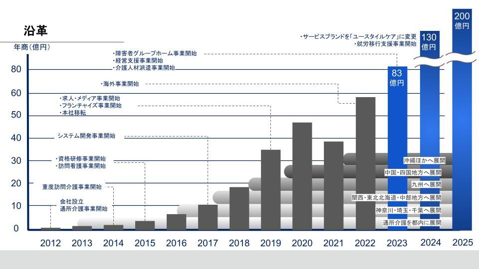 介護事業所経営支援サービス「カイビズ」や、医療福祉人材に特化した転職マッチングサイト「ユースタイルキャリア」、訪問介護に特化したスキマバイト・副業ニーズと介護事業所の人材ニーズとをマッチングする「近所ワークス」など、介護現場の運営事業者だからこそできるソリューションを業界全体に共有し、業界全体の課題解決に寄与する。
