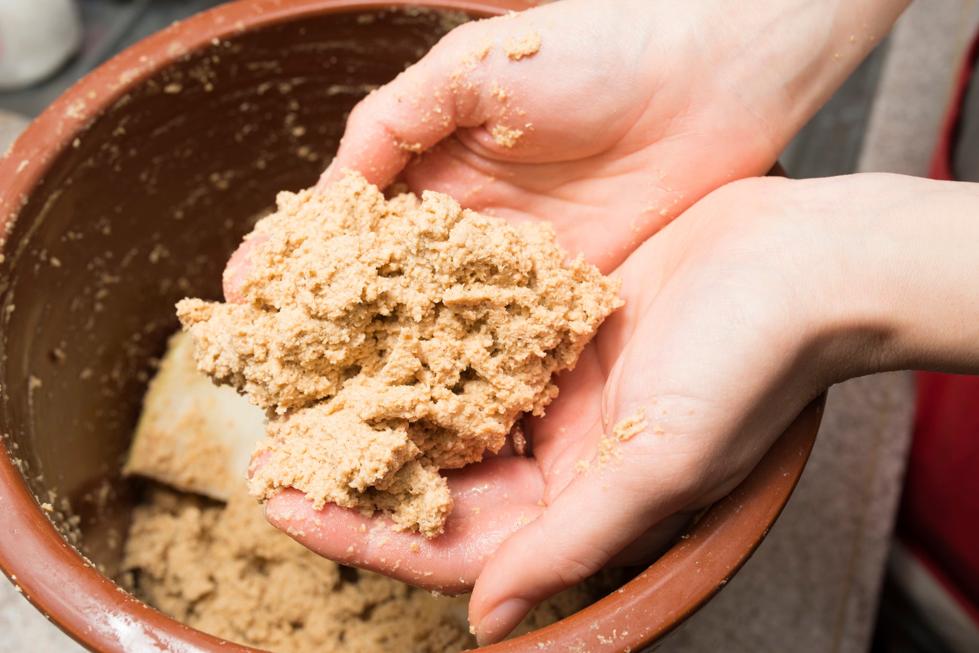 米ぬかと洗浄成分を木綿袋に詰めた「ぬか袋」。