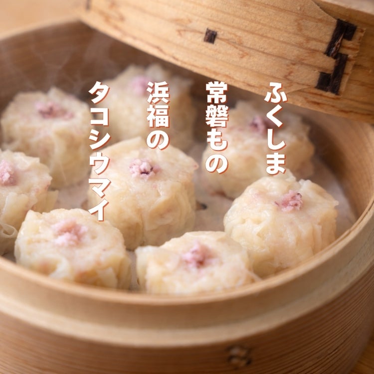 「タコシウマイ」は、福島県新地町で水揚げされたタコを使用したご当地グルメとして誕生したシュウマイです。2022年、福島の海の魅力を全国へ届けたいという想いから開発されました。原料には福島県産のタコを使用し、プリっとした食感と旨味を活かした点心として仕上げています。