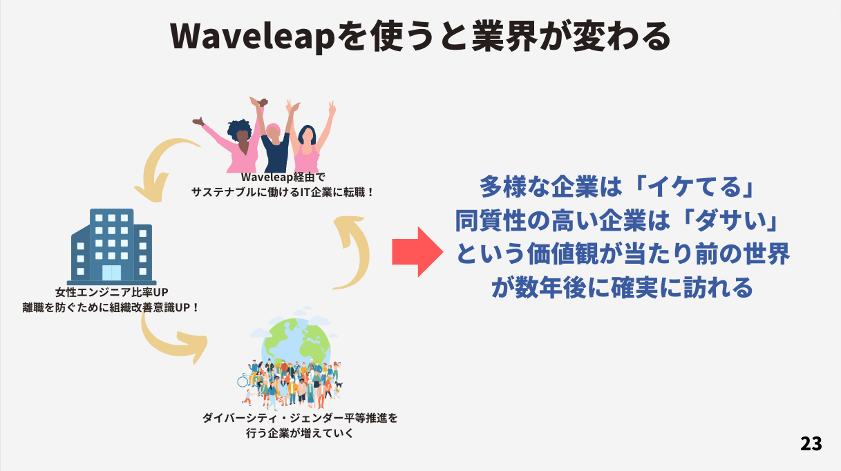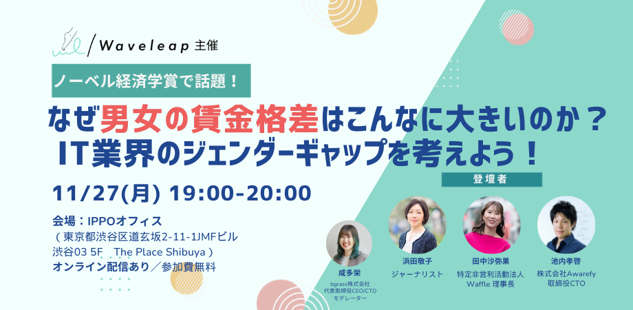 ジェンダー不平等を飛び越え、DEI推進の波をつくる。 女性・ITエンジニアの「ライフイベントに左右されず、成長していきたい」を応援する転職サービス「Waveleap」が確信する未来
