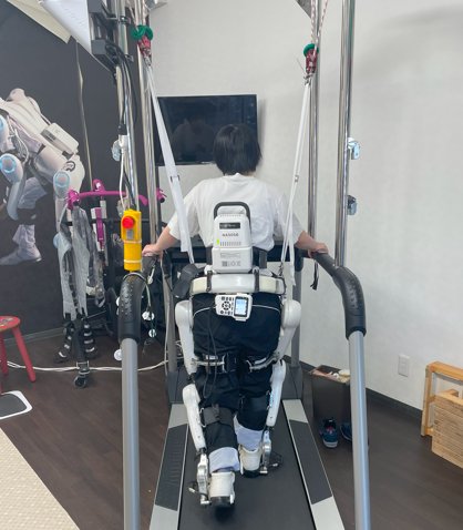 脳梗塞や脳出血、脊髄損傷、神経難病などによる障がいがある方に 対して、足や腕、腰に装着し、自身の力を利用して立つ、歩く、関節を動かすといったトレーニングを行います。