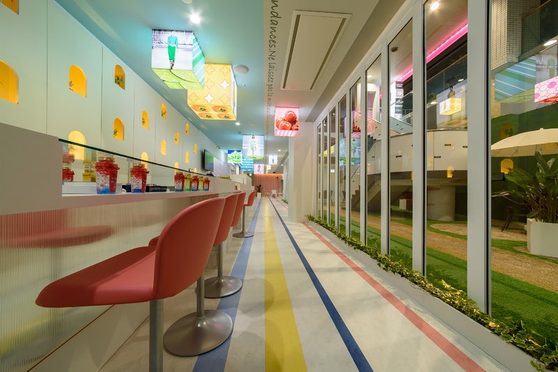 テーマはファッション×ジューシー。エントランスから中に入ると、サイコロサインが次々と目に入り、まるでランウェイを歩いているよう。インナーガーデンを望む、広々としたコミュニティースペースまるで、ふらっと立ち寄れるカフェのような雰囲気でお客さまを迎えてくれます。