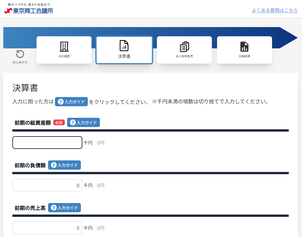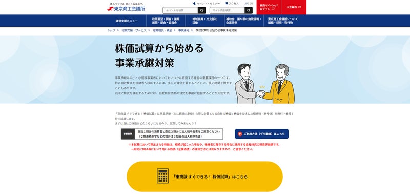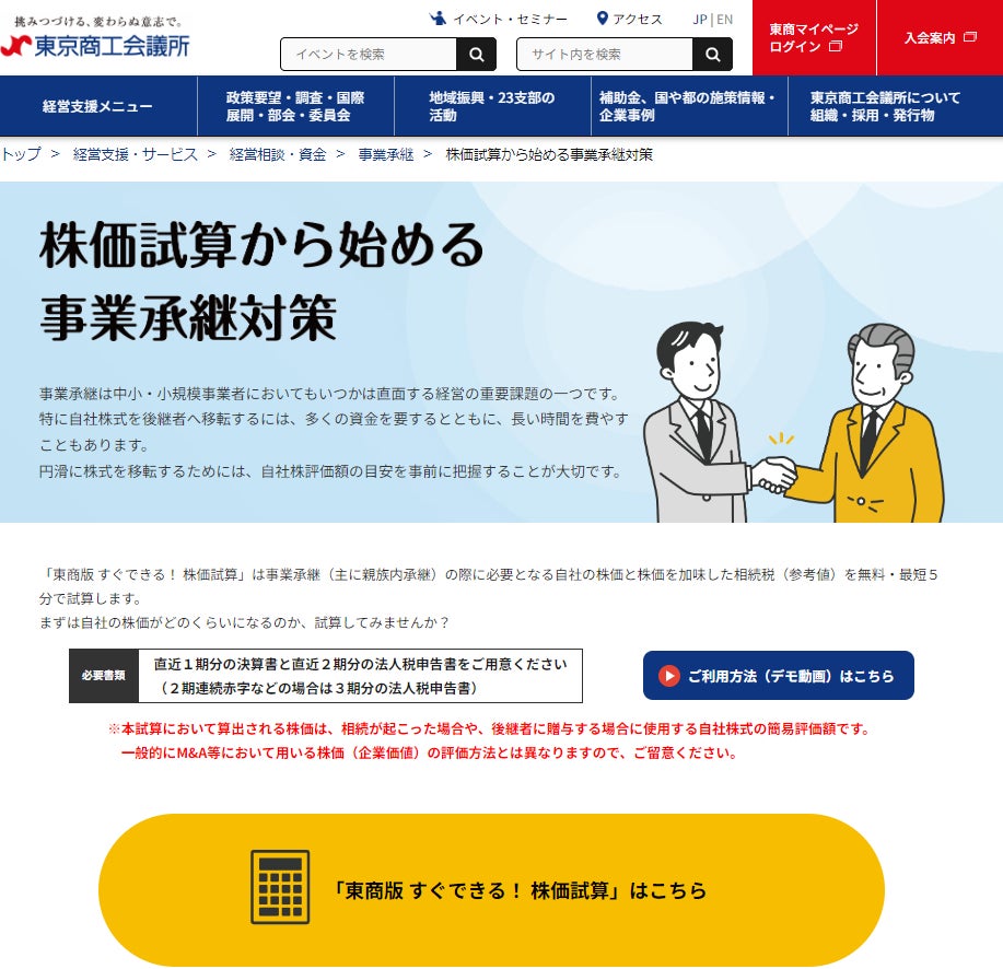 東京商工会議所が提供する中小企業向けの簡易株価試算サービスです。