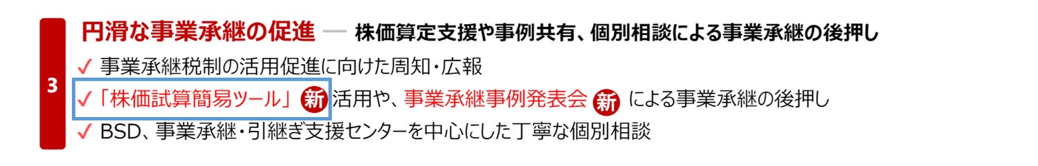 事業承継(主に親族内承継)の際に必要となる自社の株価と株価を加味した相続税(参考値)を無料・最短5分で試算します。