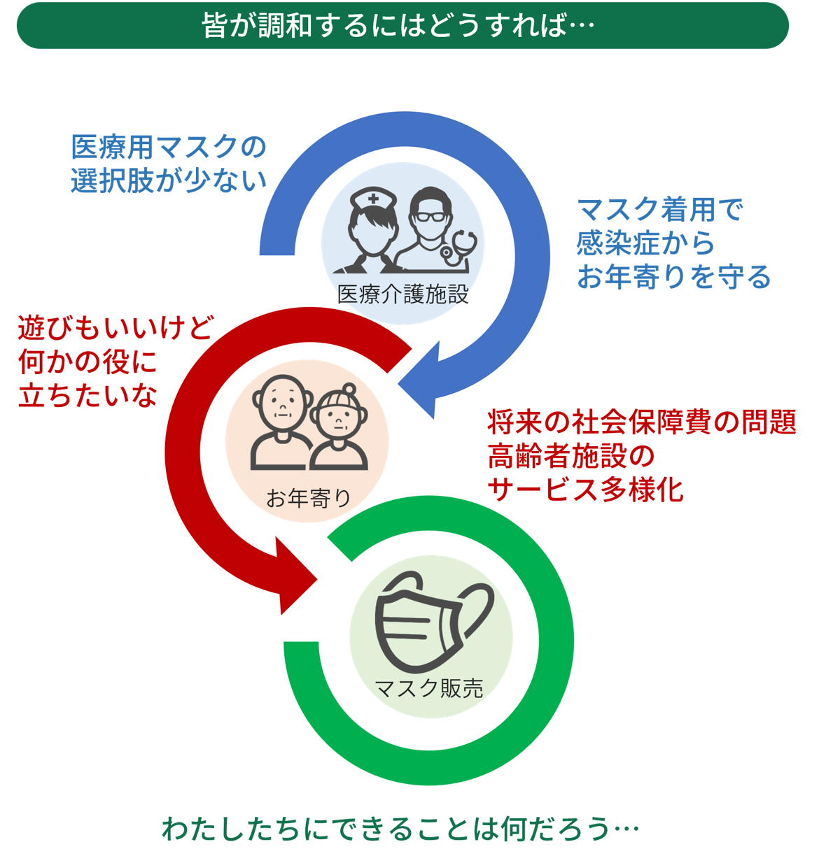 社会とのつながりを求めるお年寄りに高機能マスクの販売を通じてその機会を提供。「販売促進」の仕事提供を通じて、飛沫防止だけではなく生き甲斐を通してお年寄りを感染症から守る3方良しの取組みとは