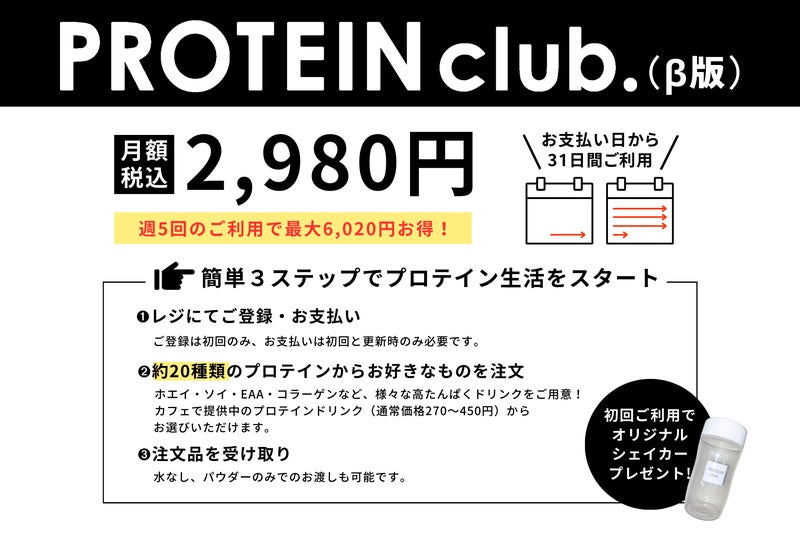 テイクアウト限定サブスクリプションサービス「プロテインクラブ(β版)」