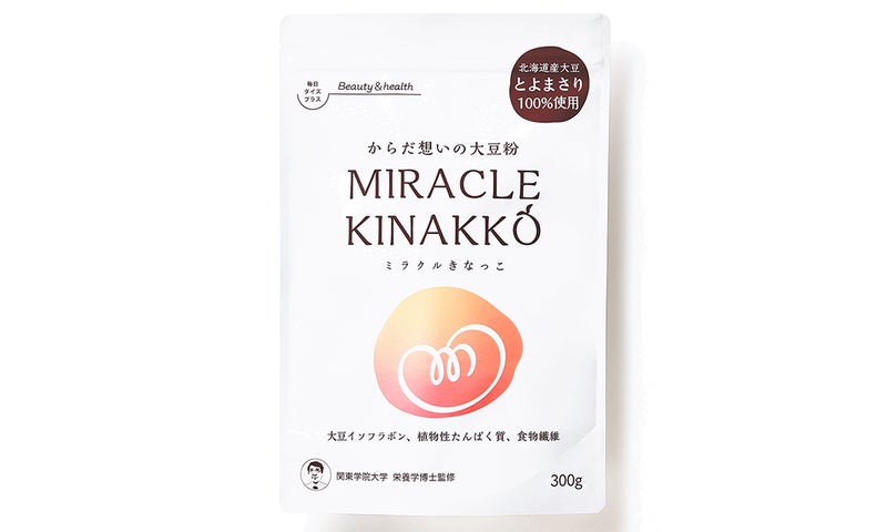 ミラクルきなっこは関東学院大学栄養学博士が発案した特許技術により、大豆特有の不快な風味をなくし、超微粉砕により水に溶けやすく、口あたりなめらか、更に栄養阻害因子をほぼ不活化させているので、そのままでも安心して食べられるおいしい大豆粉です。大豆イソフラボン、植物性たんぱく質、食物繊維など、からだにうれしい栄養