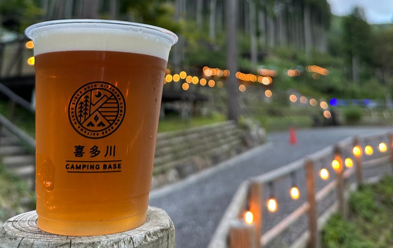 飯能市地元にあるカールバーンへ依頼し、北川で収穫した柚子を使って開発したオリジナルビール。喜多川キャンピングベースのみで限定販売されています。(800円)