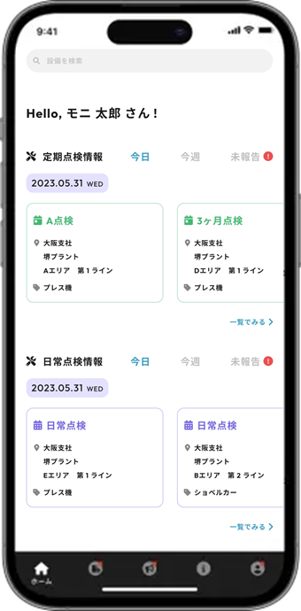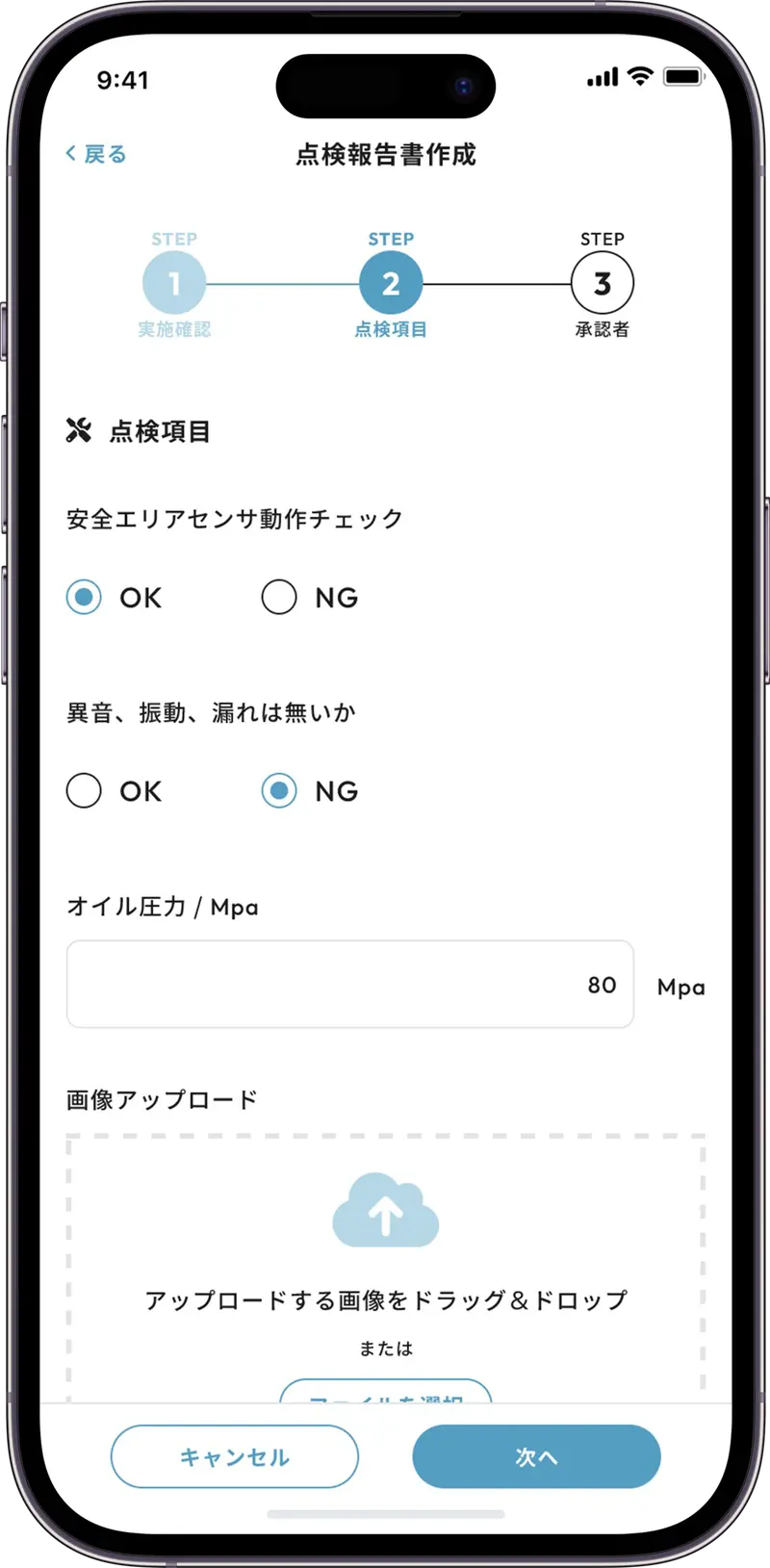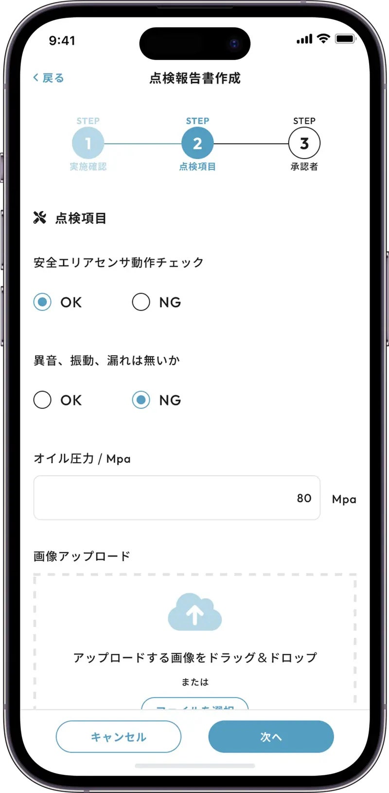 ・スマホアプリを使って現場で点検結果や写真をアップロード。自動で報告書が作成される