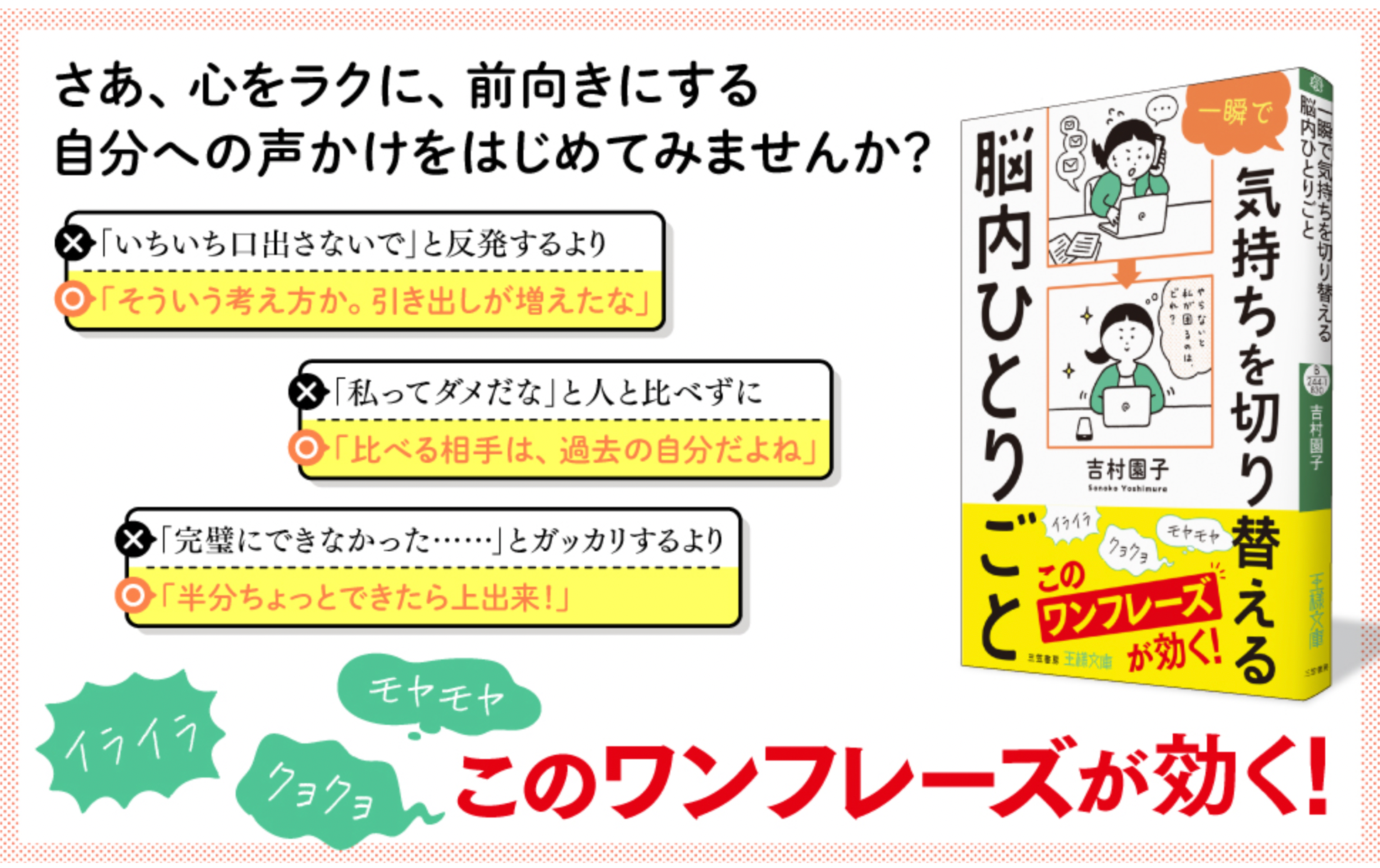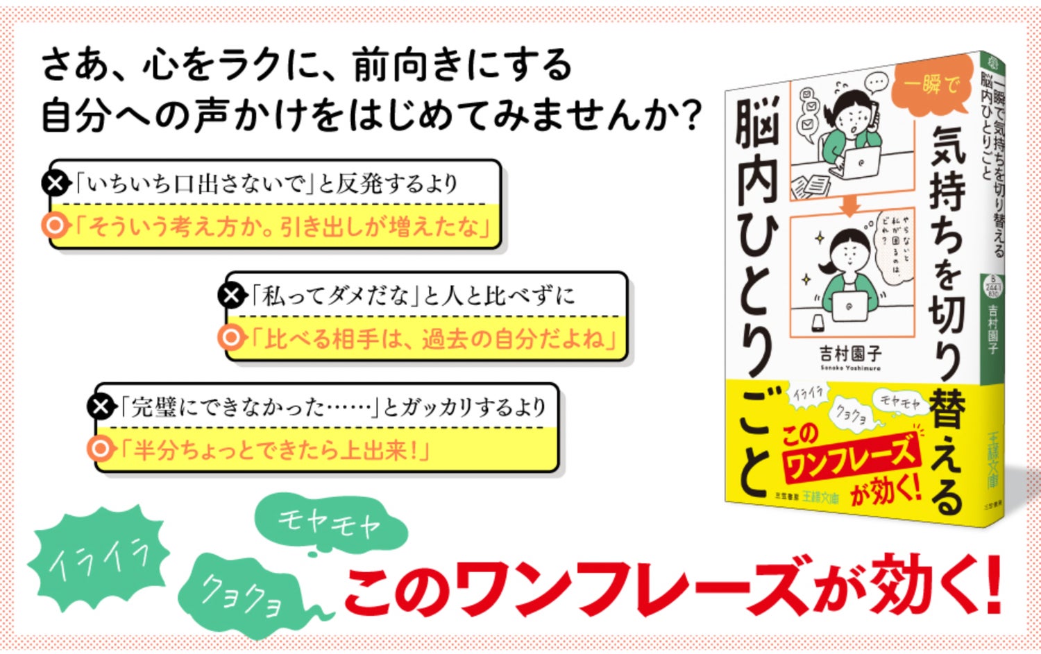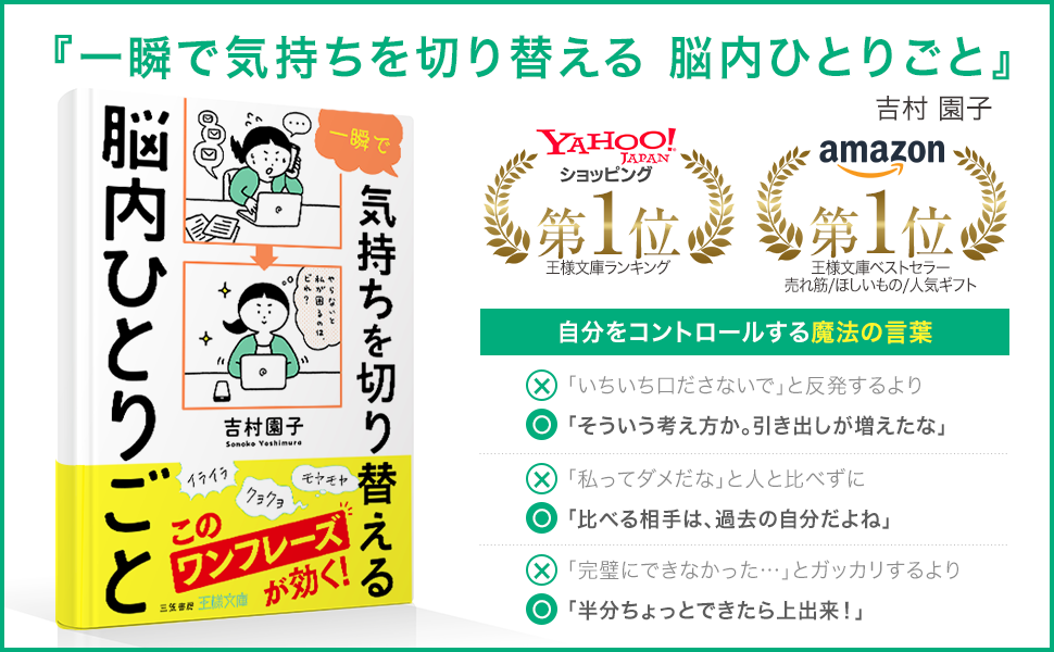 【Amazon王様文庫ランキング1位獲得!】ネガティブな感情も『一瞬で気持ちを切り替える脳内ひとりごと』12/15までジュンク堂書店池袋本店様でデジタルサイネージでご紹介!