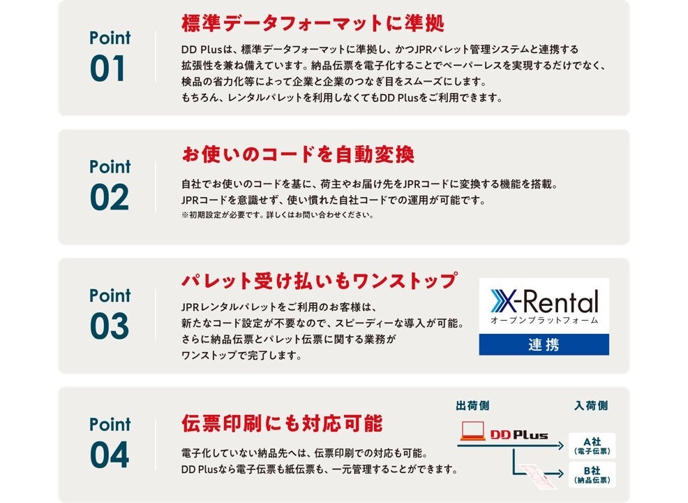 また、JPRをご利用のお客さまであれば、現在お使いのJPRコードを使用でき、納品書の処理と、パレット伝票の処理をワンストップで完結することができるようになります。