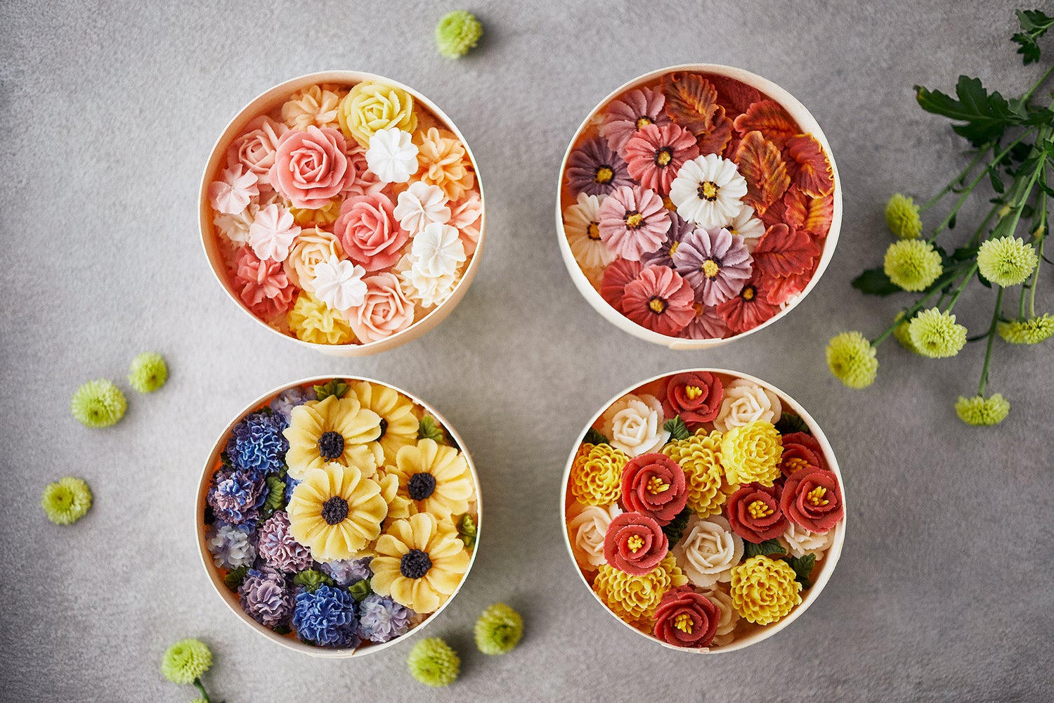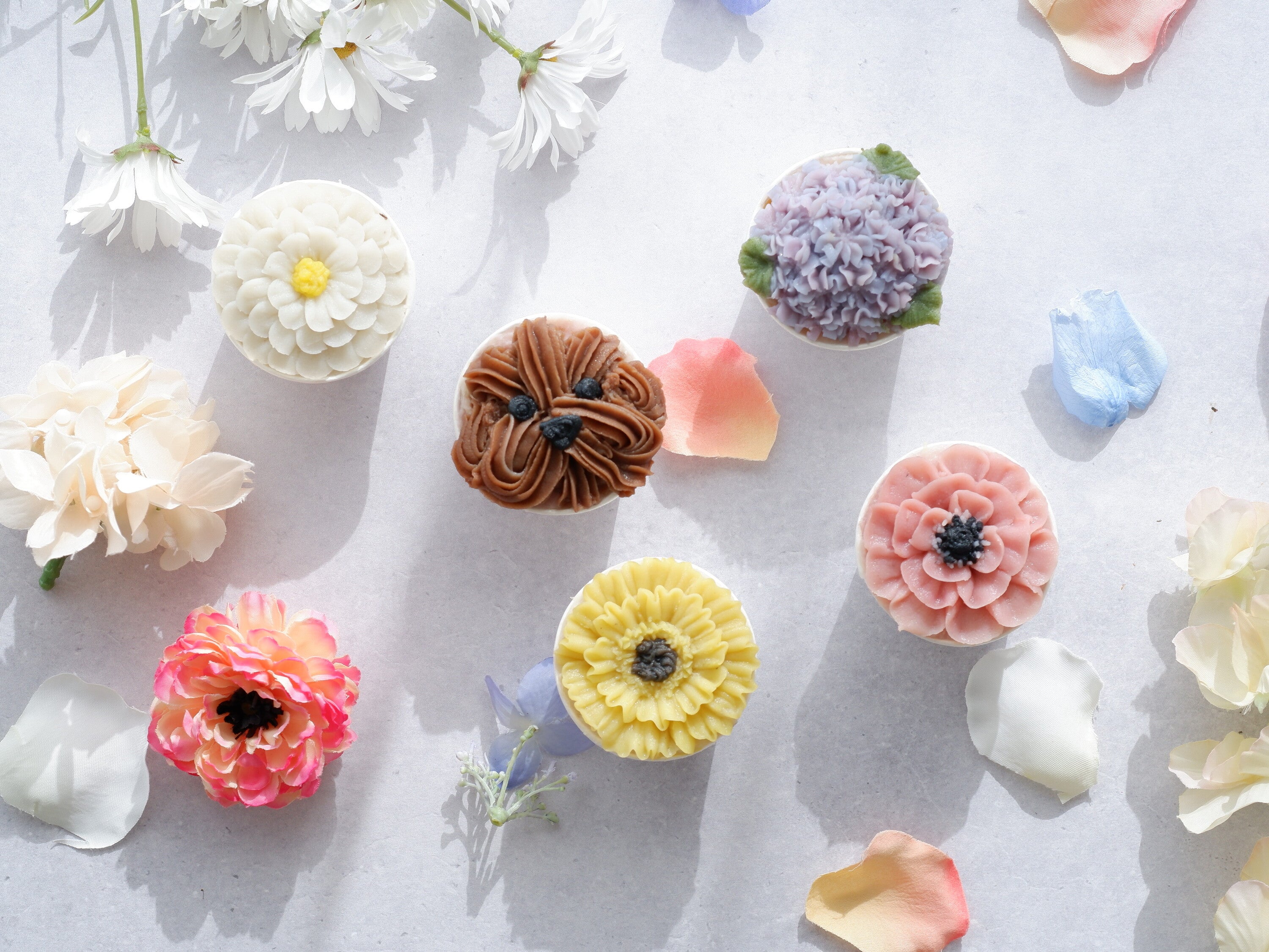 この講座のレシピは全てグルテン・乳フリー、健康を意識したレシピで作成し、お花絞りの技術も学びます。