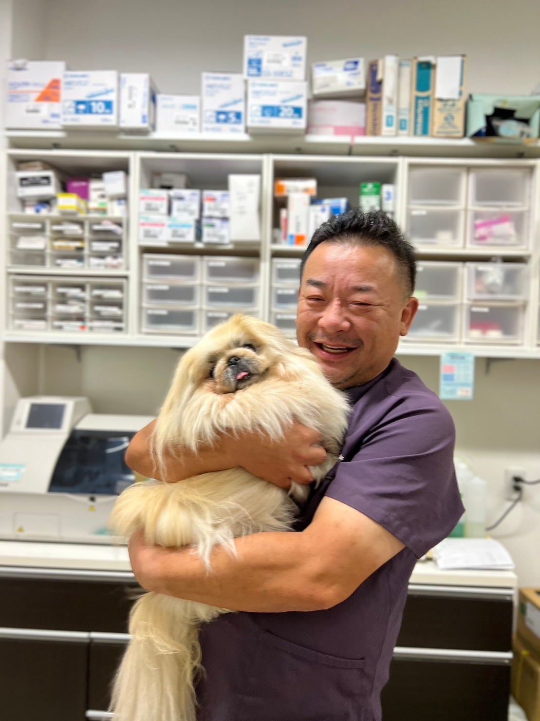 明るく楽しい病院づくりを目指し、飼い主様とは病状や治療方針についてじっくり相談して治療方針を決めていく、地域に愛される動物病院の院長。