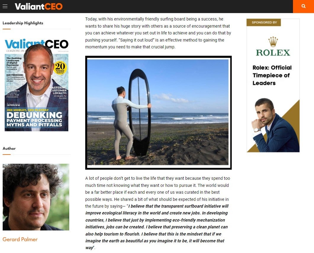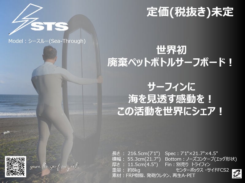 私たちの暮らしの中で利用されているプラスチック素材を廃棄することなく再利用し、エコなスポーツアクティビティを広げたい。そんな想いから制作したまったく新しい「透明なサーフボード」。