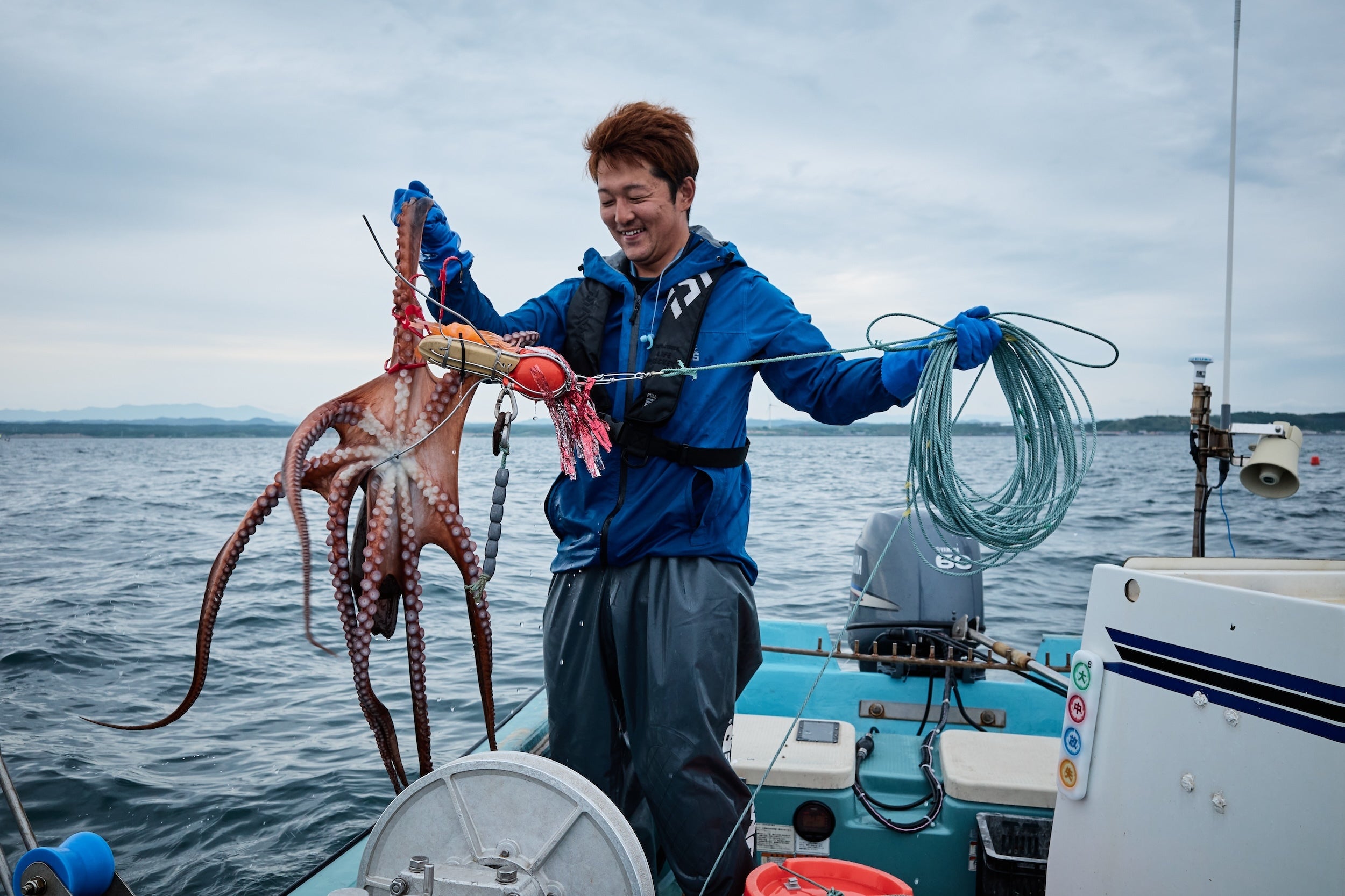 北海道苫前町出身。高校を卒業後、漁師である父の怪我をきっかけに漁師の道へ。現在は父とともにミズダコの樽流し漁法を中心に、タコ箱漁の他、主に刺し網でニシンやカレイなどの漁を行う。2017年にUMITO Partnersの村上と出会い、サステナブルな漁業の実現と漁師コミュニティーの活性化を目指してミズダコのサステナブル漁業プロジェクトをスタート。