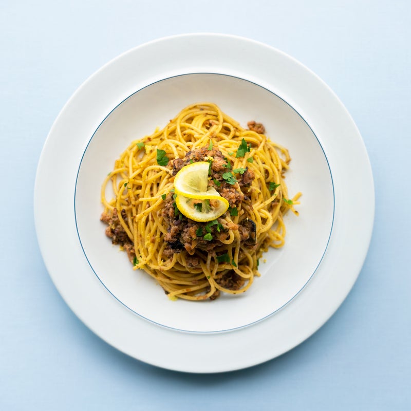 北海道苫前町のミズダコをつかったレモンバジルのパスタソース