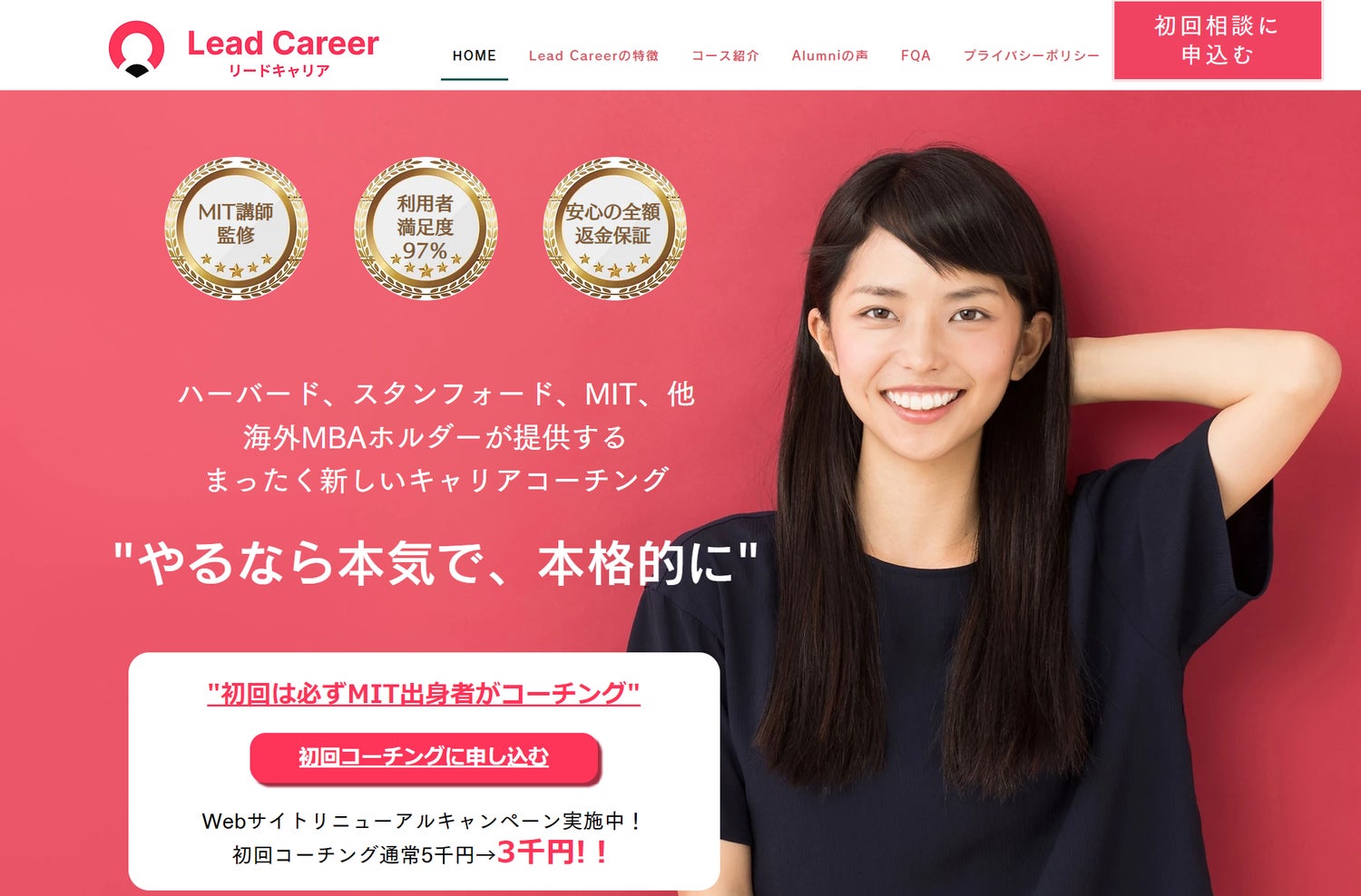Lead Careerは海外MBAホルダーによるキャリアコーチングプログラムです。MITとスタンフォード出身者がアメリカ式のコーチングメソッドを日本人向けにアレンジしました。コーチングは今やビジネスマネジメントに必須のスキルとなっているため、ほとんどのMBAスクールではコーチングを学びます。豊富なビジネス経験とコーチングの知見を兼ね備えたMBAホルダーがコーチとなり、MIT講師が監修したLead Career独自のキャリアコーチングプログラムを提供します。