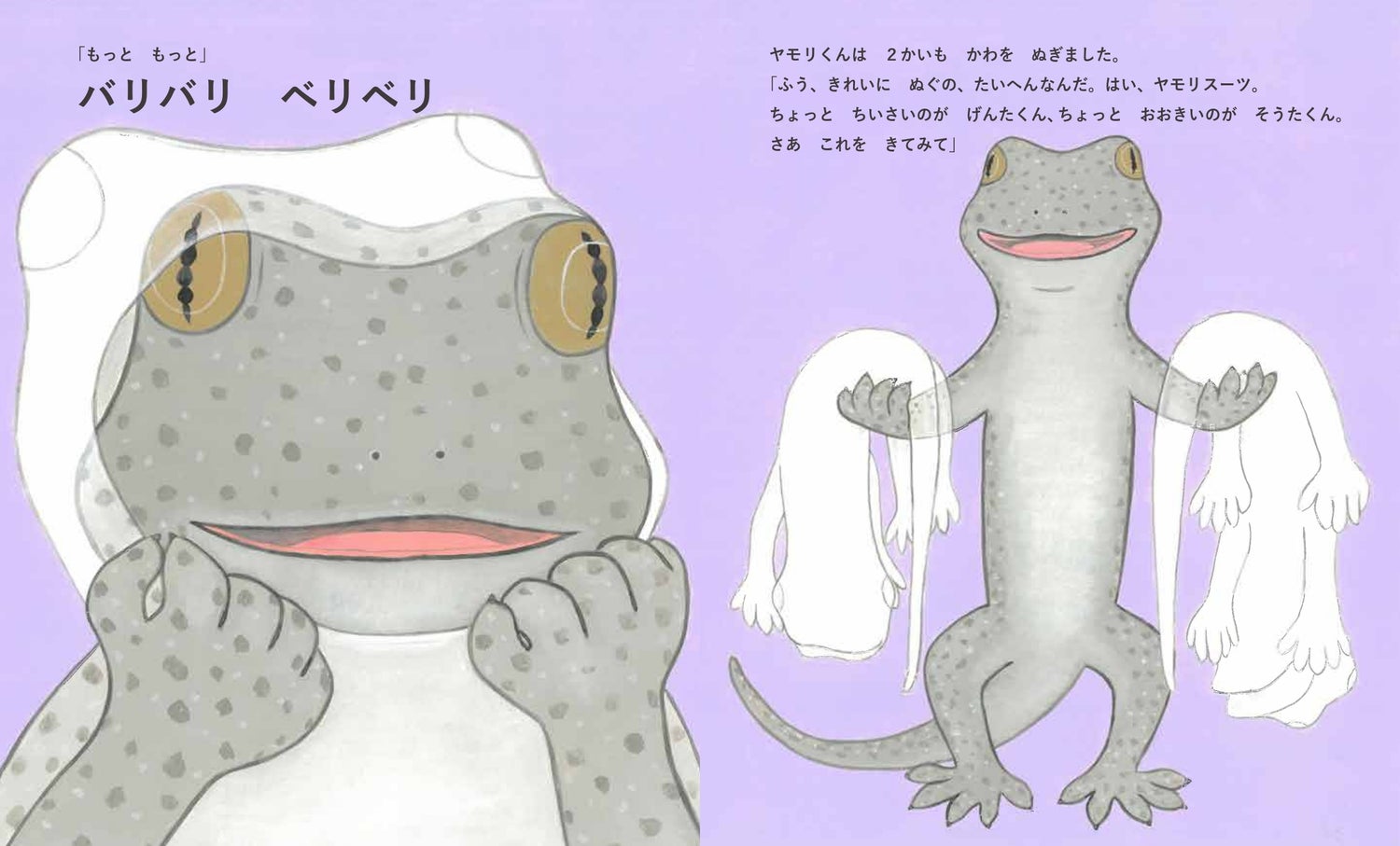 片付けの必要性にせまられると、面倒くさかったり別のことをしてしまったり…苦手なひとならなおさらですよね。そうたくんげんたくん兄弟も腰が重いのです。そこへ龍神の使いで家の守り神だというヤモリが現れ、片付け、そして掃除の極意を教えてくれます。さらにはヤモリに変身させてくれて3兄弟で楽しい時を過ごします。辛いと思えることも、向かい方次第で楽しめるしきもちよくもなれる…読後ここちよいノビができる作品です。。