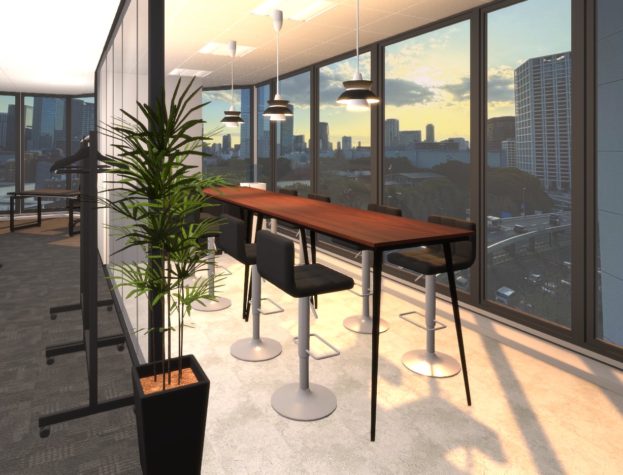 「プライバシーが確保され、集中できるワークスペース」「小型でも十分な数の会議・オンライン商談スペース」「快適でリフレッシュできる休憩スペース」などの要件をレイアウトに反映できます。